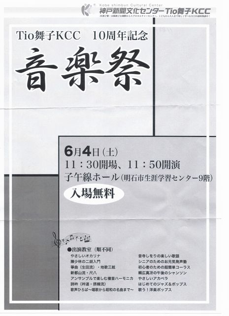 「 6.4 Tio舞子KCC 10周年記念 音楽祭 」
